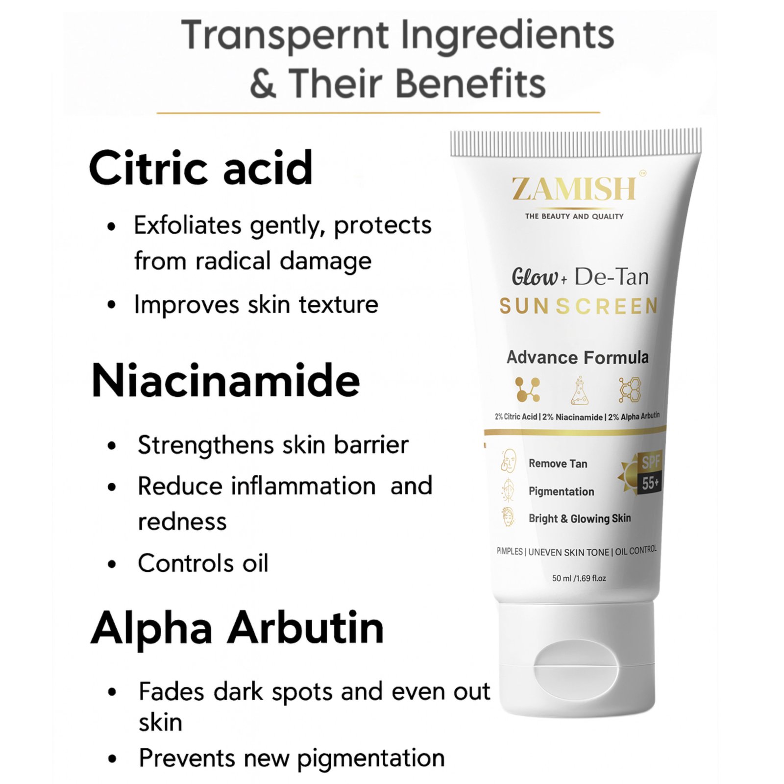 *🌞 Zamish DeTan Sunscreen SPF 55 PA+++*